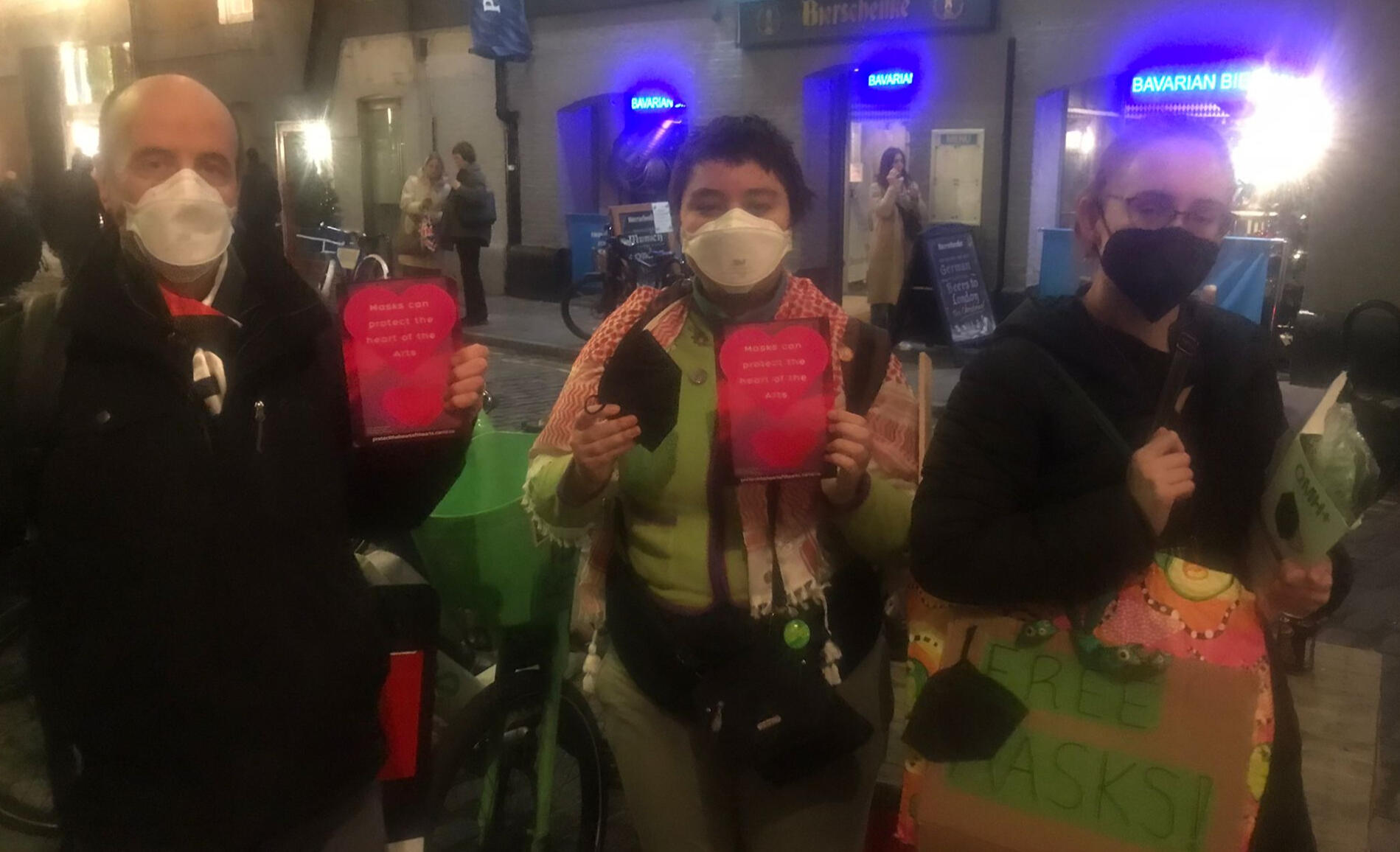 Mask hand-out at Donmar Warehouse theatre, 16 December 2023