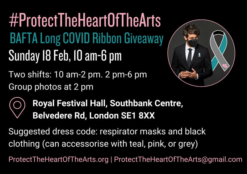 Performers and their allies will distribute Long COVID awareness ribbons at the BAFTAs, with the aim of raising awareness of the devastating impact of Long COVID on the performing arts community.The "Protect the Heart of the Arts" Long COVID ribbon giveaway is scheduled to take place at Southbank Centre’s Royal Festival Hall, on Sunday 18 February, between 10 am and 6 pm.